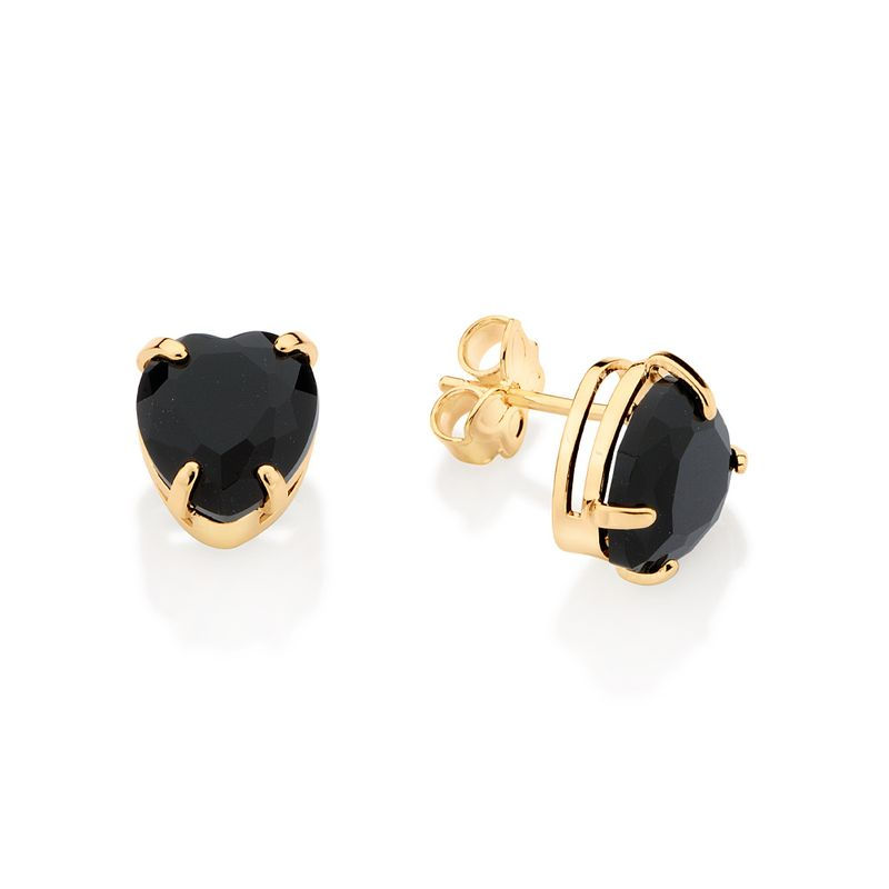 Brinco rommanel solitário coração folheado a ouro com cristal