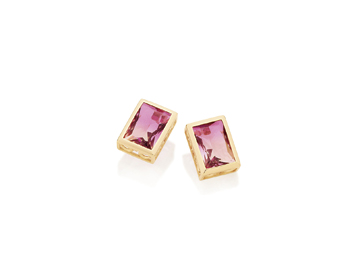 Brinco solitário formado por laterais com detalhes estilizados vazados, composto por 2 cristais retangulares facetados de 10 x14 mm (par).