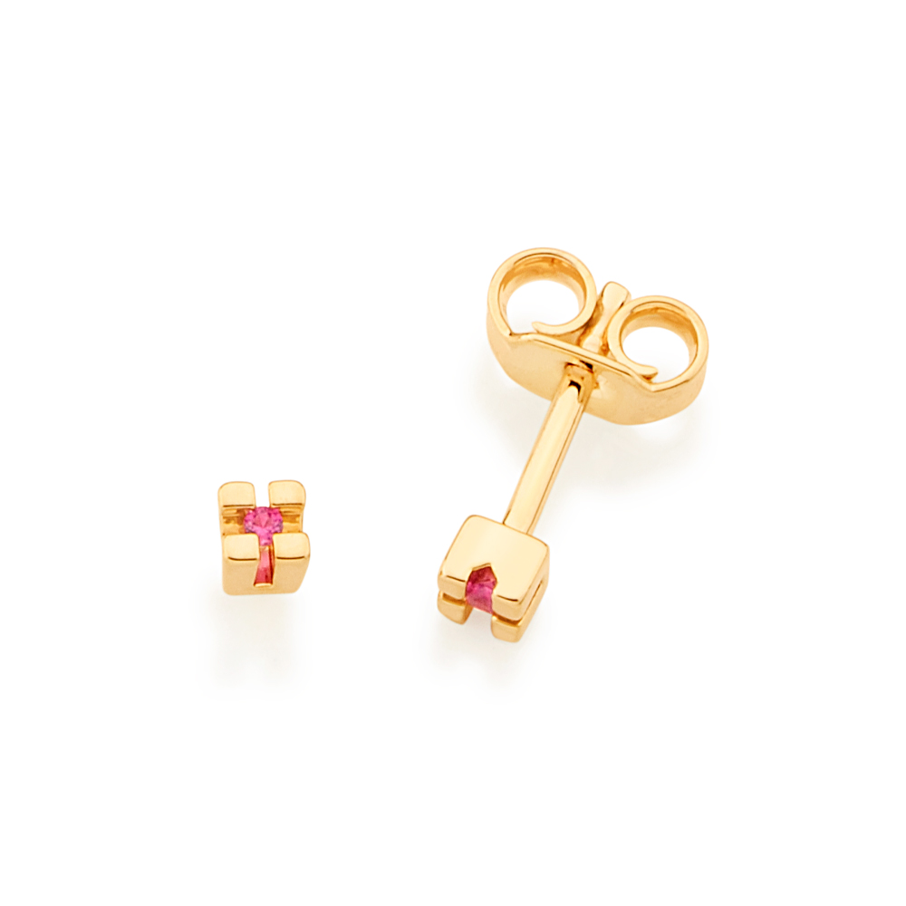 Brinco solitário infantil, cravejado por 2 zircônias de 1,0 mm (par).