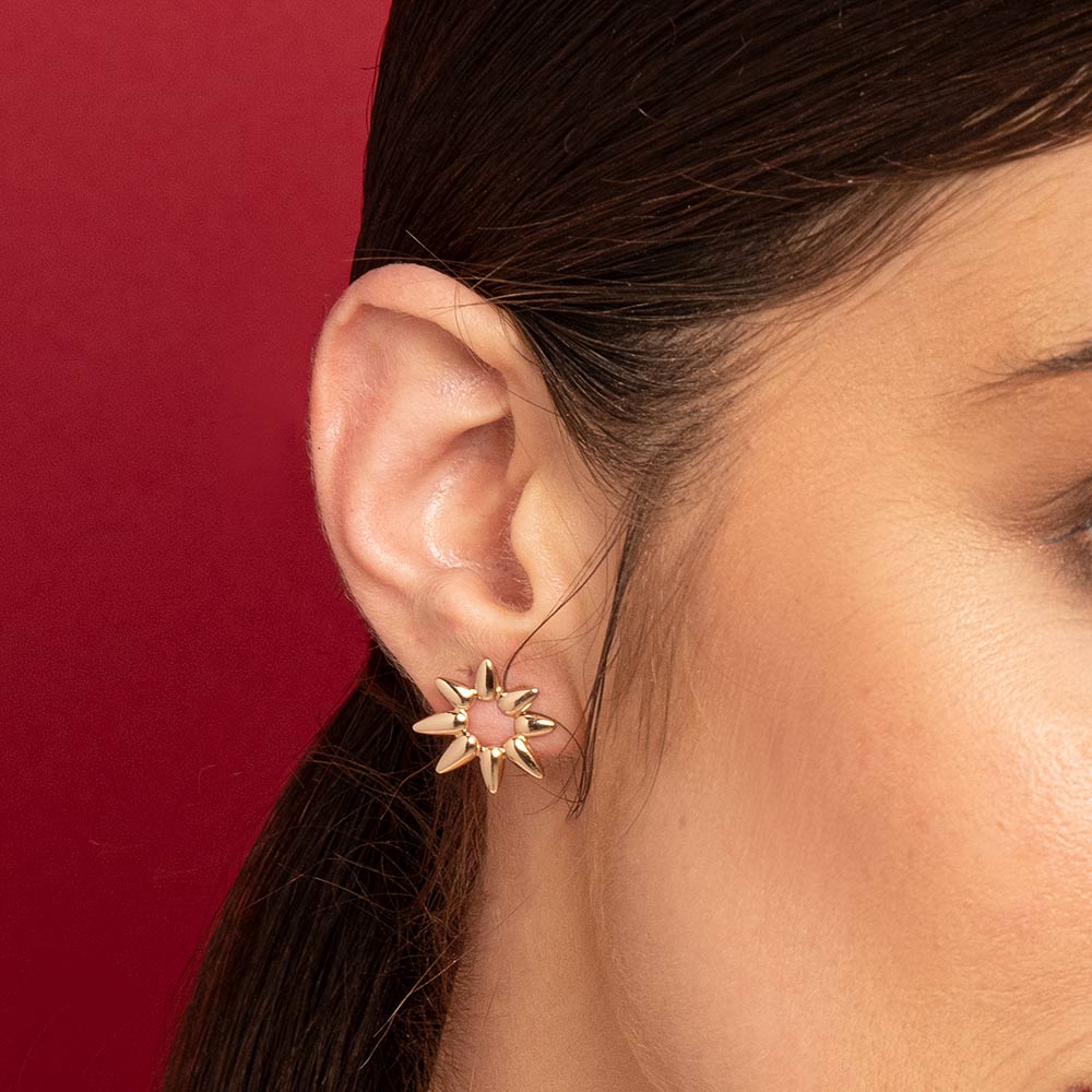 Brinco rommanel Banhado a ouro 18k. brinco em formato de sementes unidas que lembram um sol.