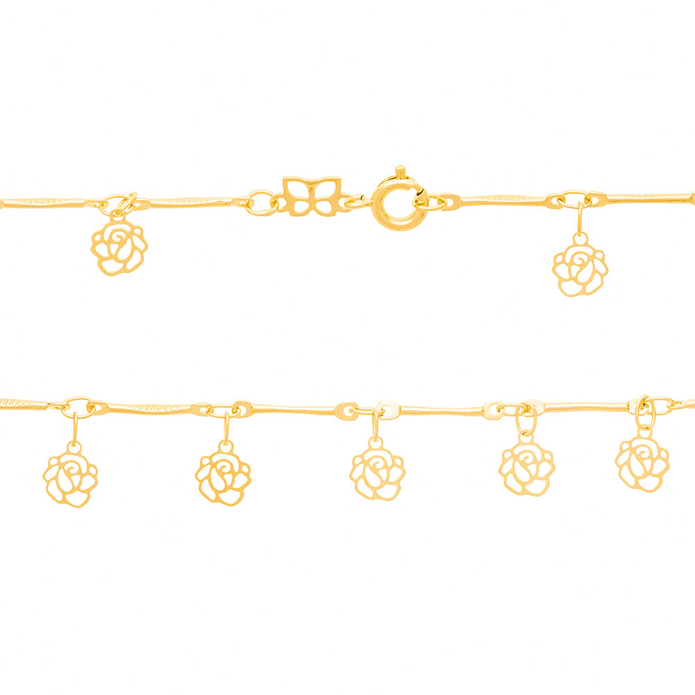 Colar rommanel banhado ouro primavera de rosas 531940 Joia pertencente a coleção ana hickmann Colar rommanel Banhado a ouro 18k. gargantilha formada por fio de palito trabalhado, intercalados por berloques de rosas vazadas.