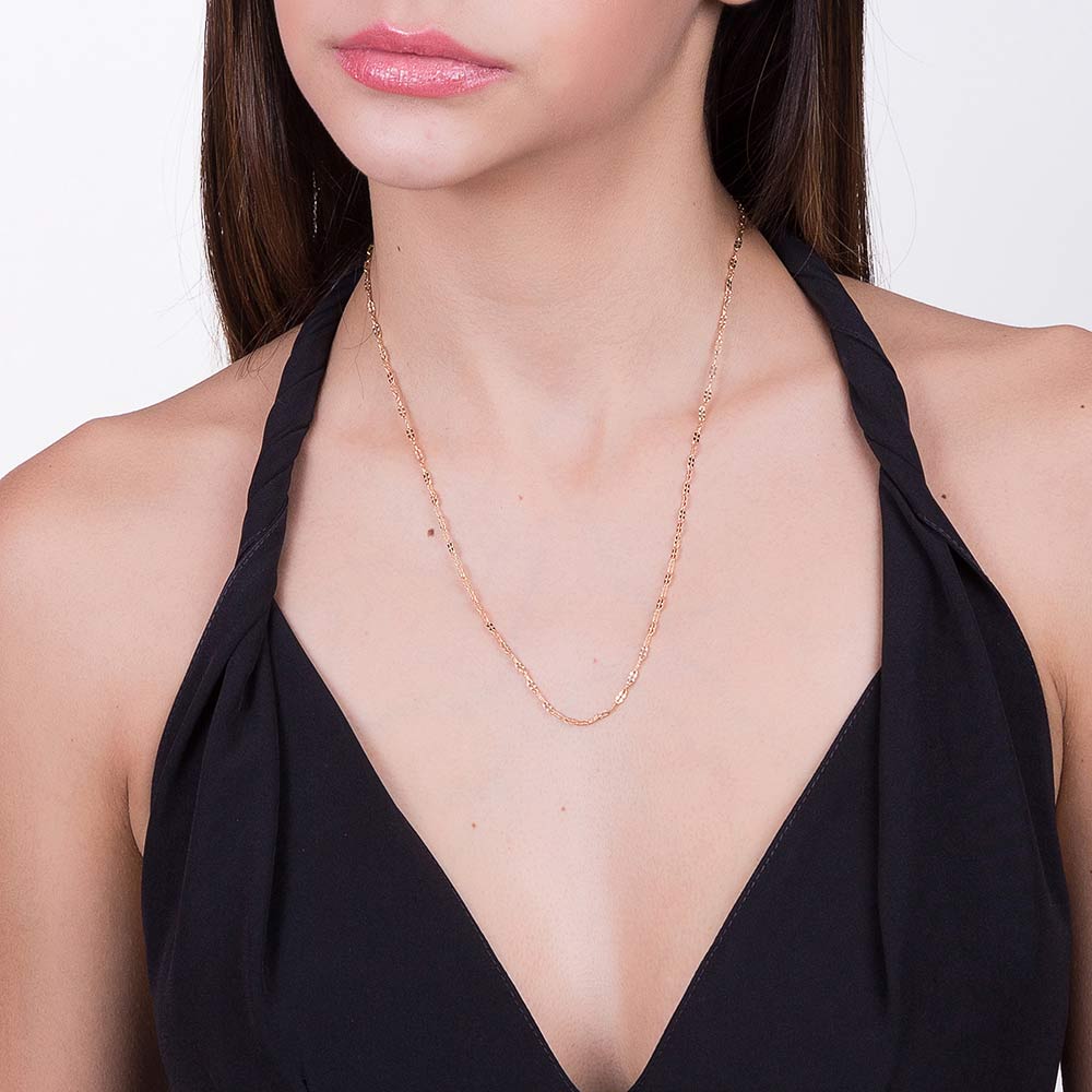 Corrente rommanel banhado ouro fio navetes batidas 531298