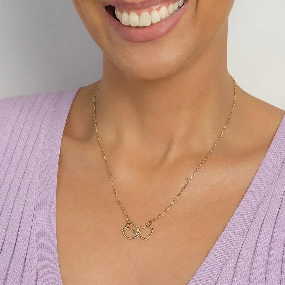 Gargantilha formada por corrente de elo cadeado fio 0,40 mm, composta por pingente amor conectado com um coração e um menino