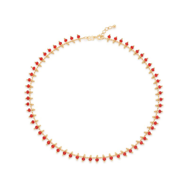 Gargantilha formada por corrente de elos batidos fio 0,40 mm, intercalada por miçangas de 3,50 mm.