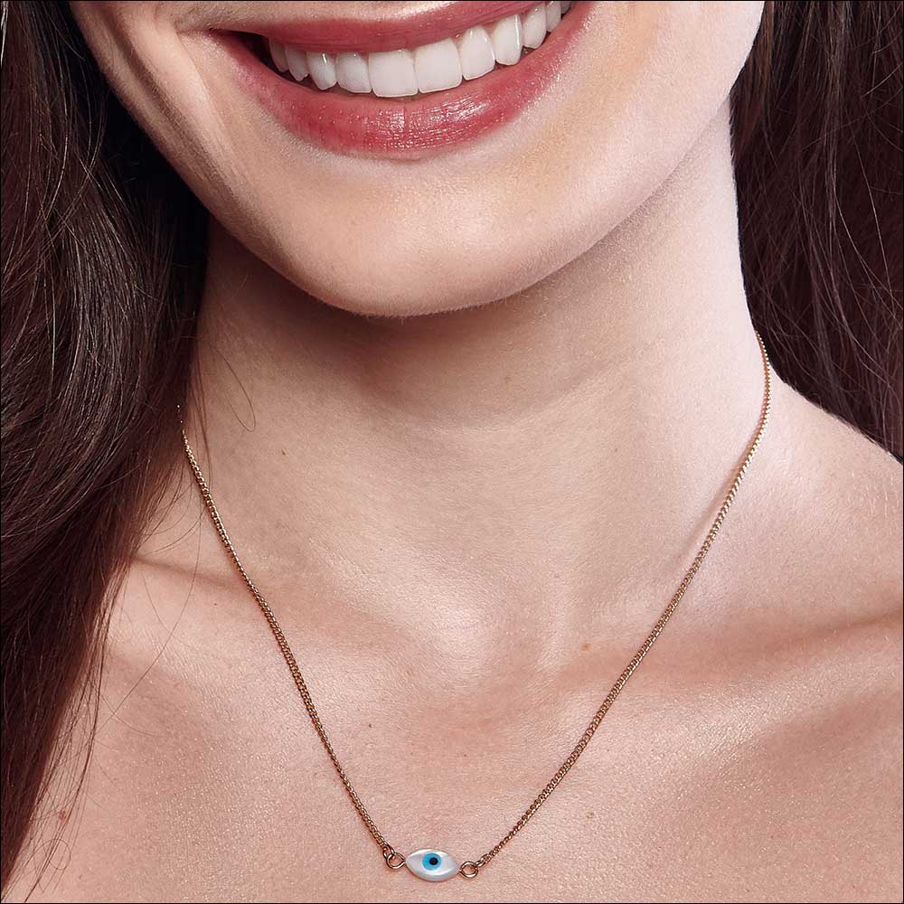 Gargantilha formada por fio 0,40 grumet diamantada, composta por pingente olho grego.(joia licenciada coleção cápsula giovanna antonelli 1)