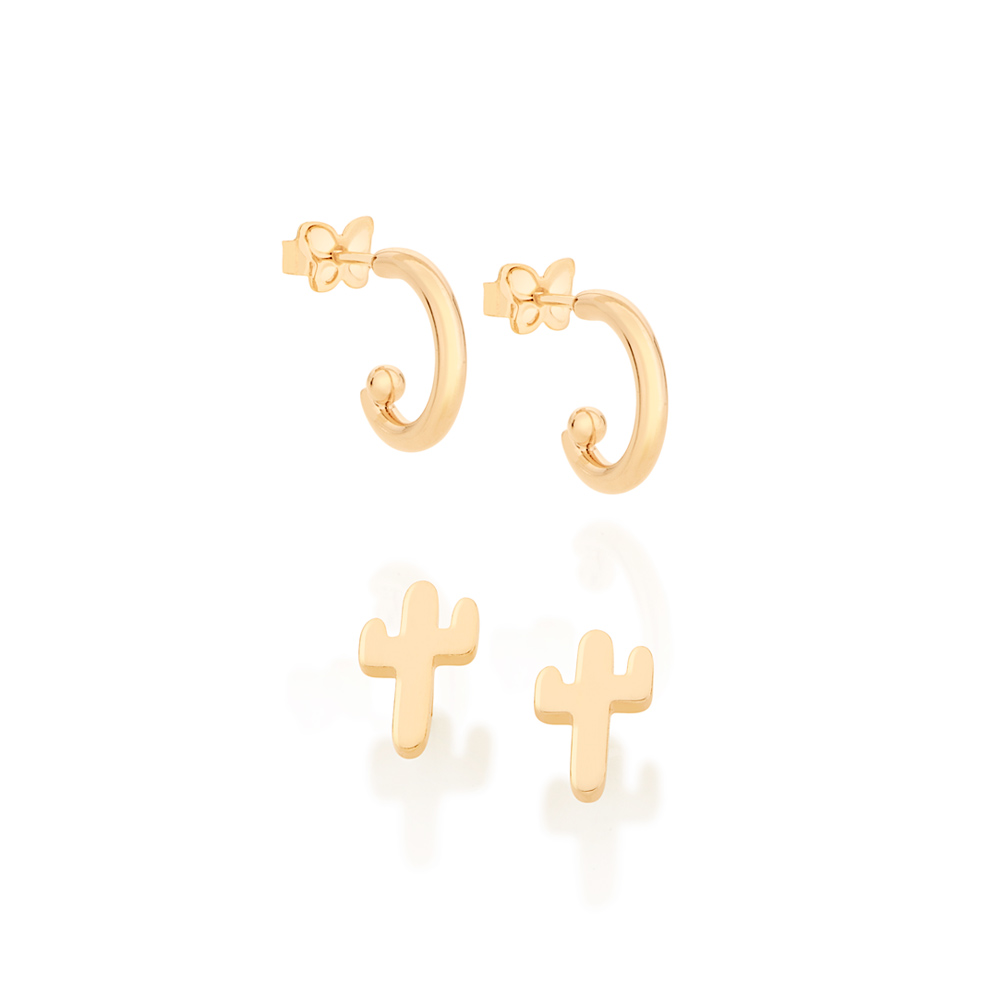 Kit Brinco formado por um par no formato de cacto, e um par de argolinhas