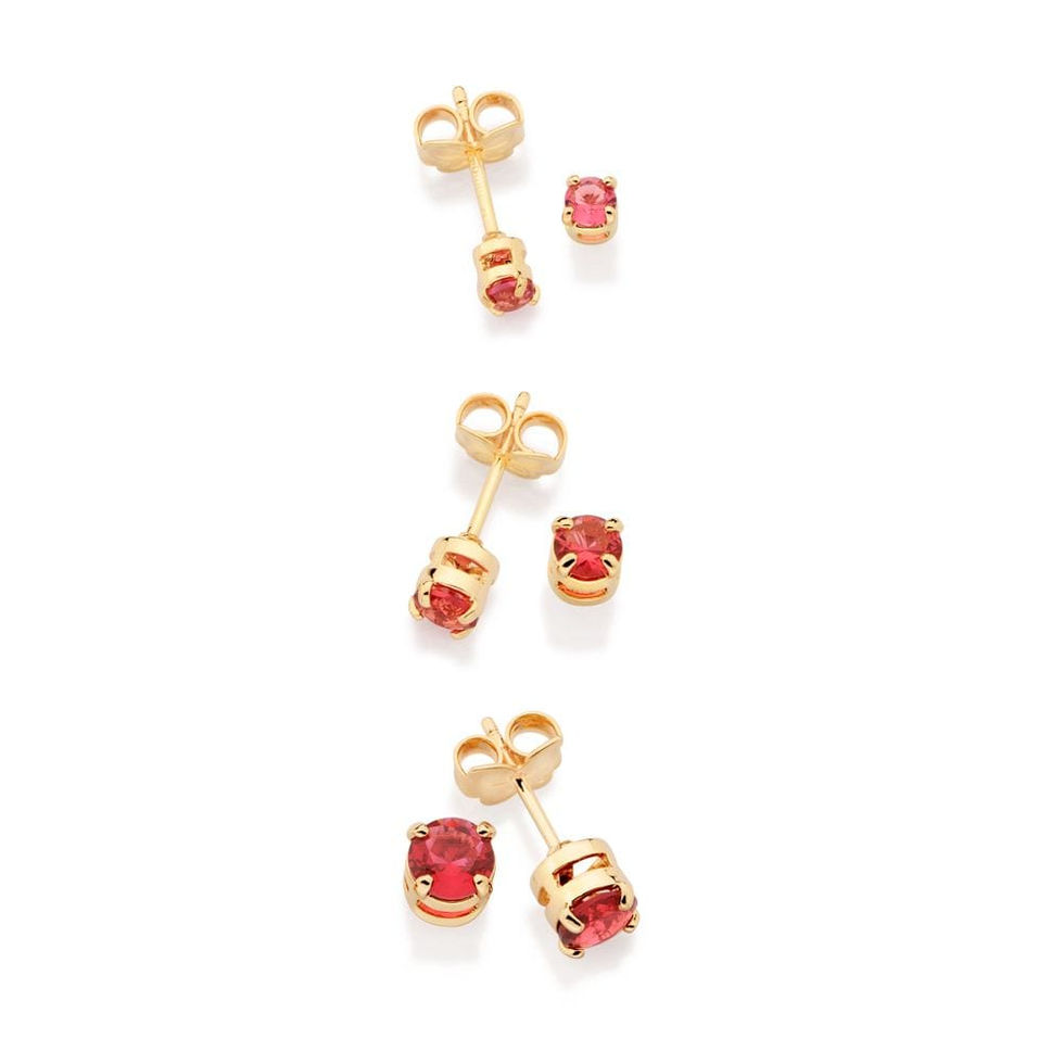 Kit brinco solitários com 1 par composto por 2 cristais de 3mm, 1 par com 2 cristais de 4mm e 1 par com 2 cristais de 5mm