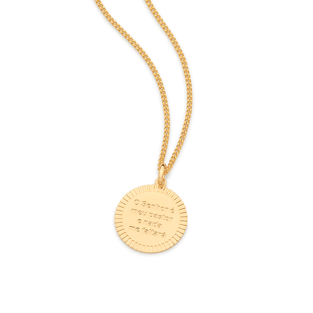 Pingente medalha escrito o senhor é meu pastor e nada me faltará.