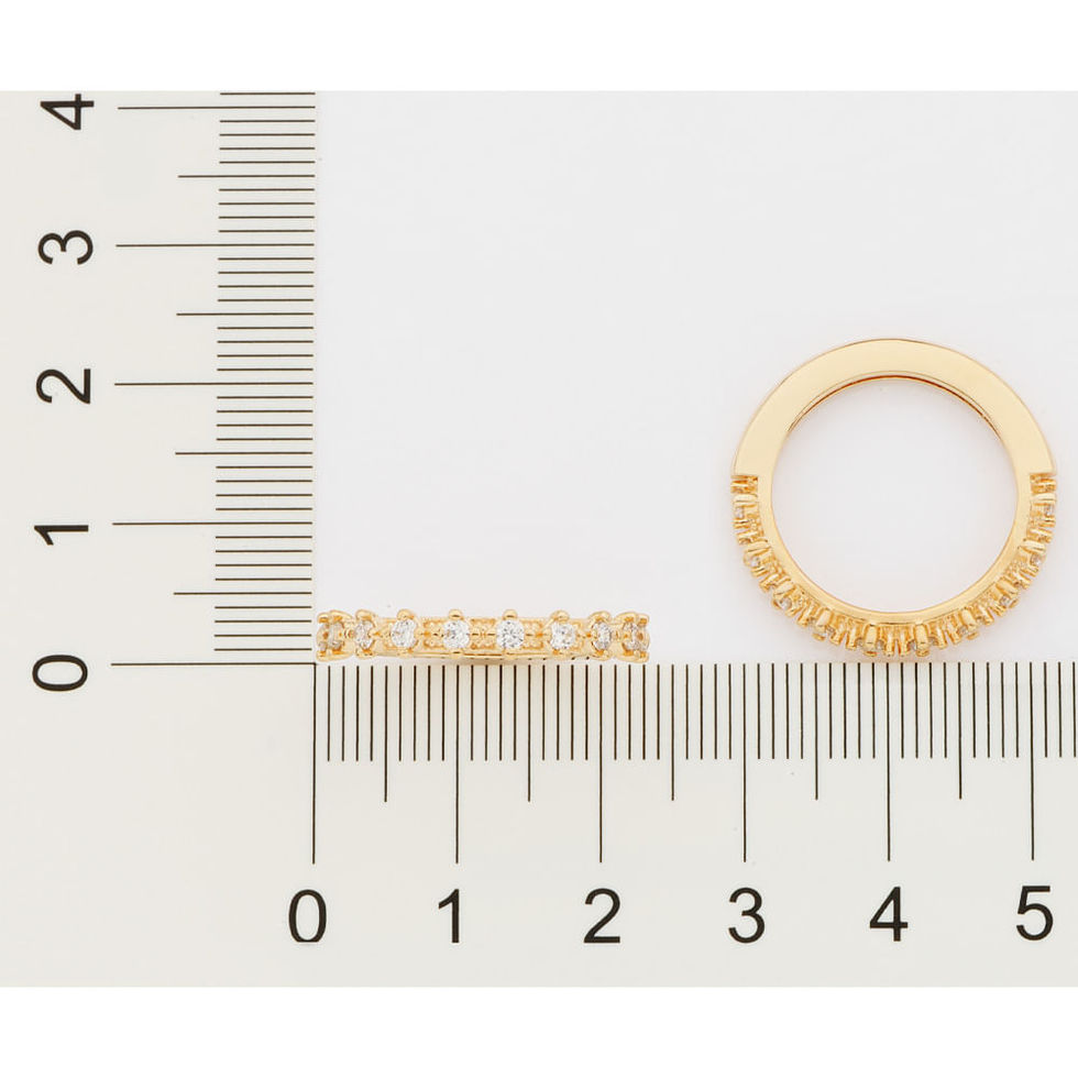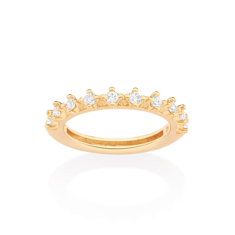 Meia aliança cravejada por 10 zircônias de 2,0 mm.