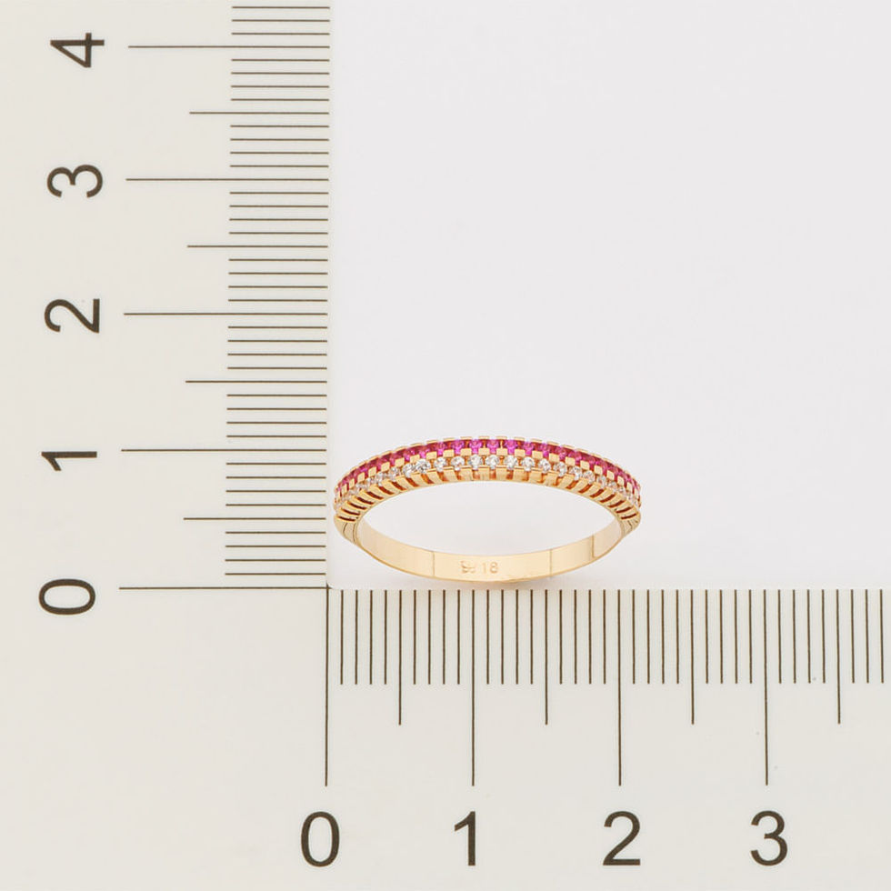Meia aliança cravejada por 48 zircônias de 1,0 mm.