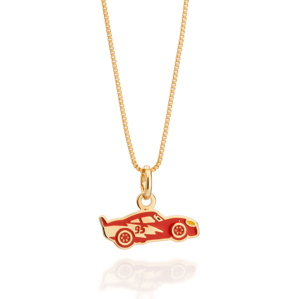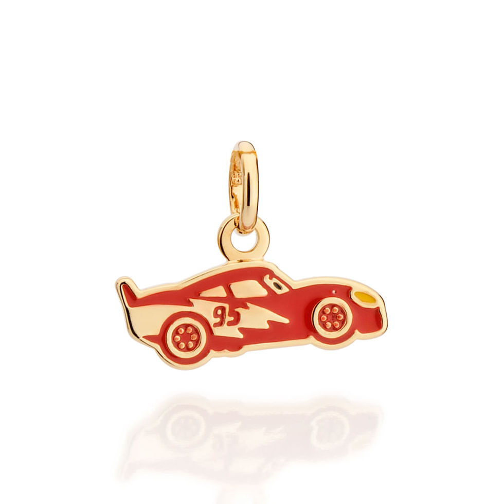 Pingente carro relâmpago mcqueen banhado a ouro 18k com aplicação de resina