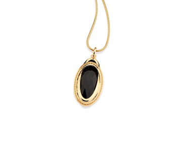 Pingente com pedra oval facetada de 12x30mm e peça sobreposta com detalhes trabalhados. Med 3,5 cm(joia licenciada ana hickmann 11º edição)