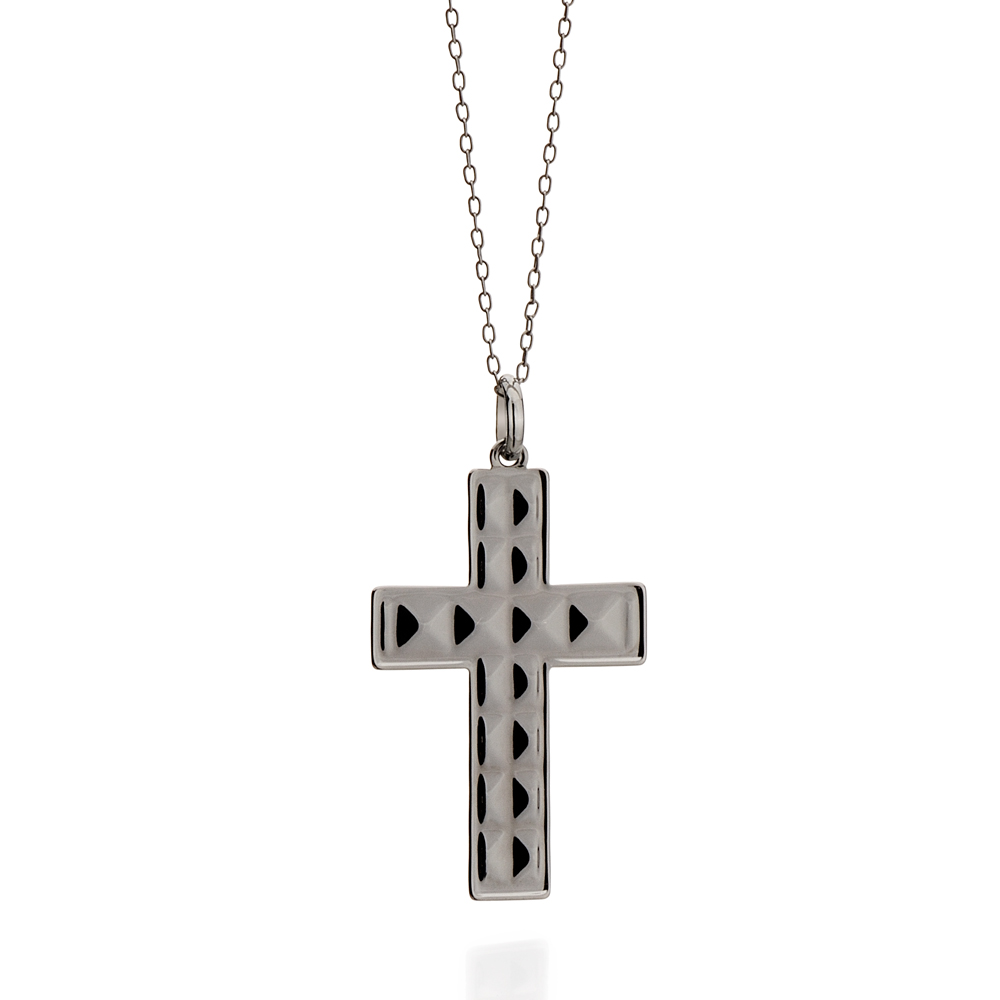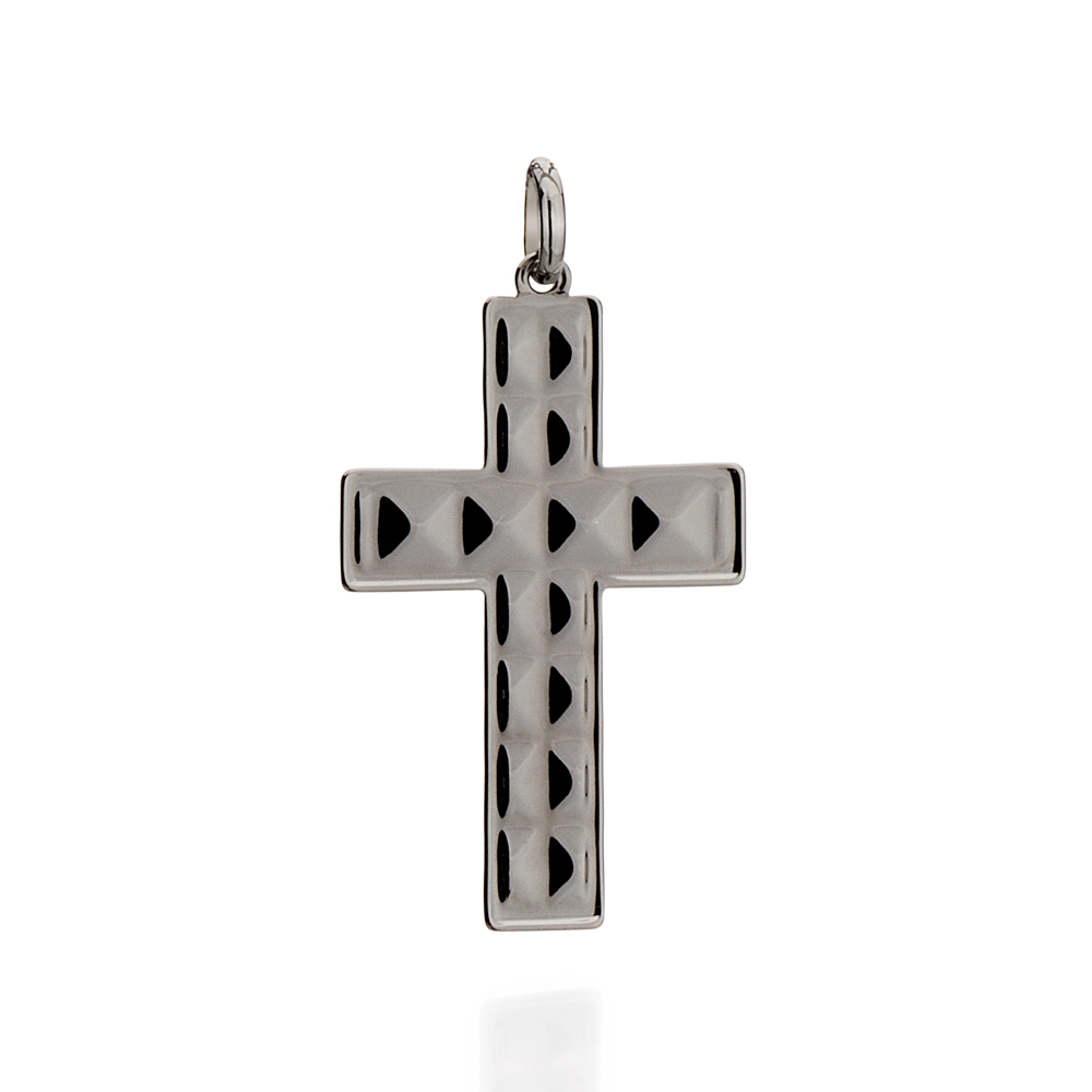 Pingente cruz estilizada com detalhes geométricos. Rommanel by mario queiroz