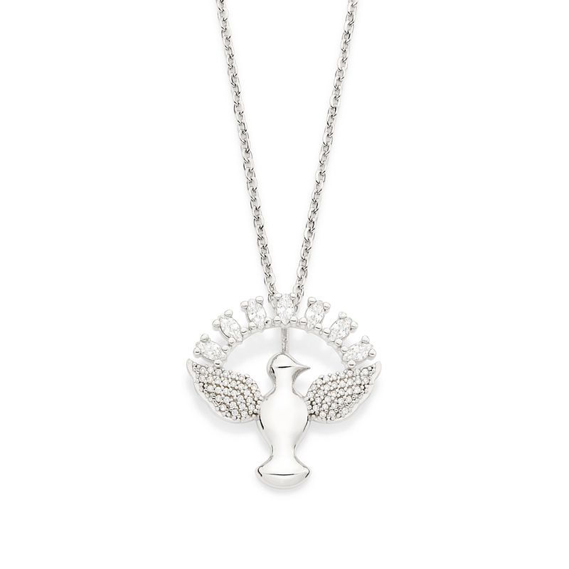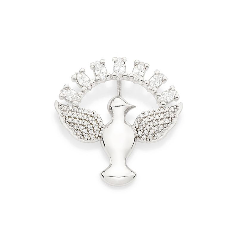 Pingente rommanel espírito santo folheado a platina com zircônias