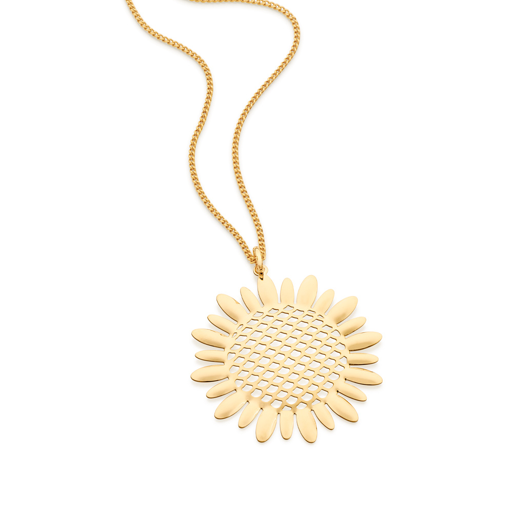 Pingente rommanel girassol folheado a ouro