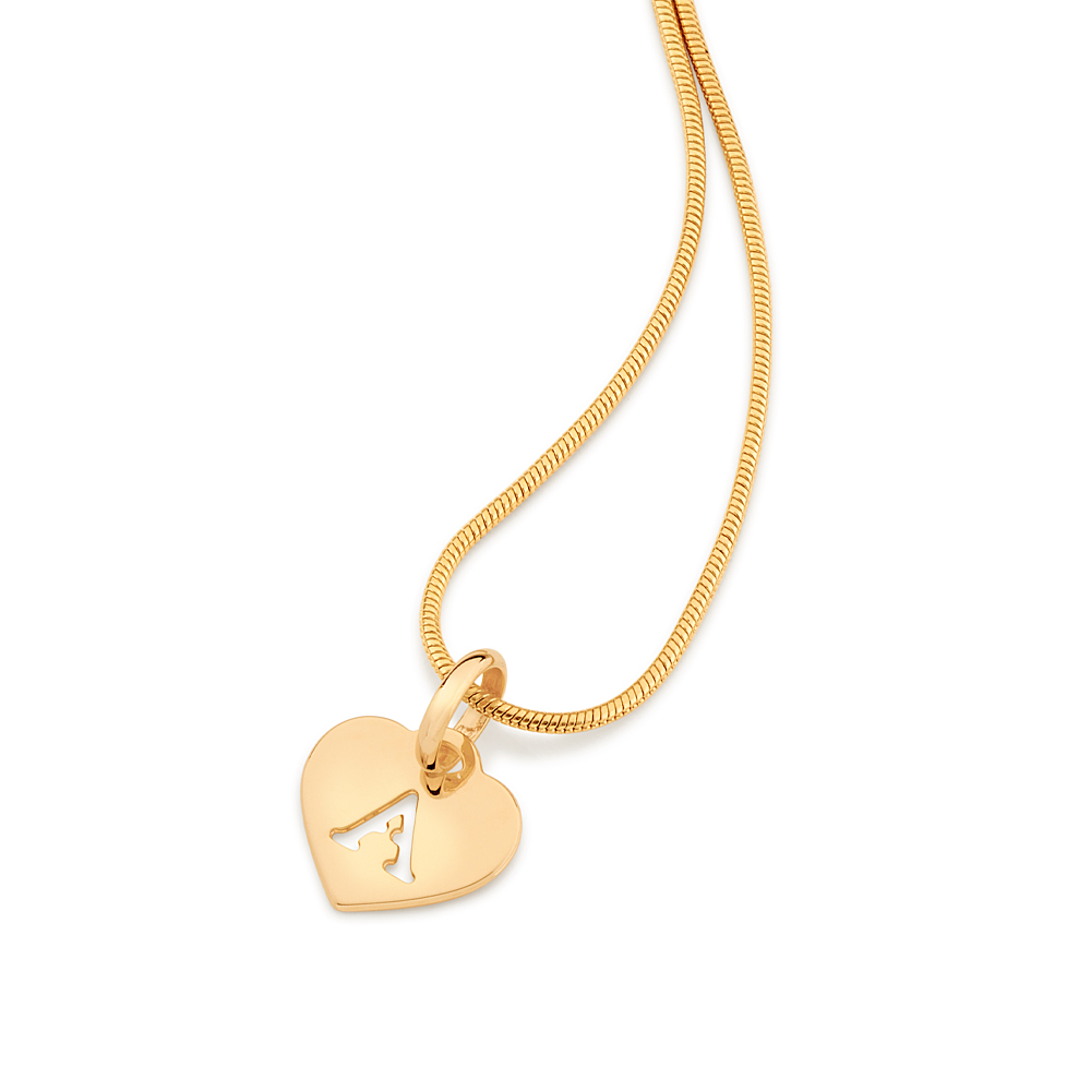 Pingente rommanel no formato de coração com letra vazada ao centro