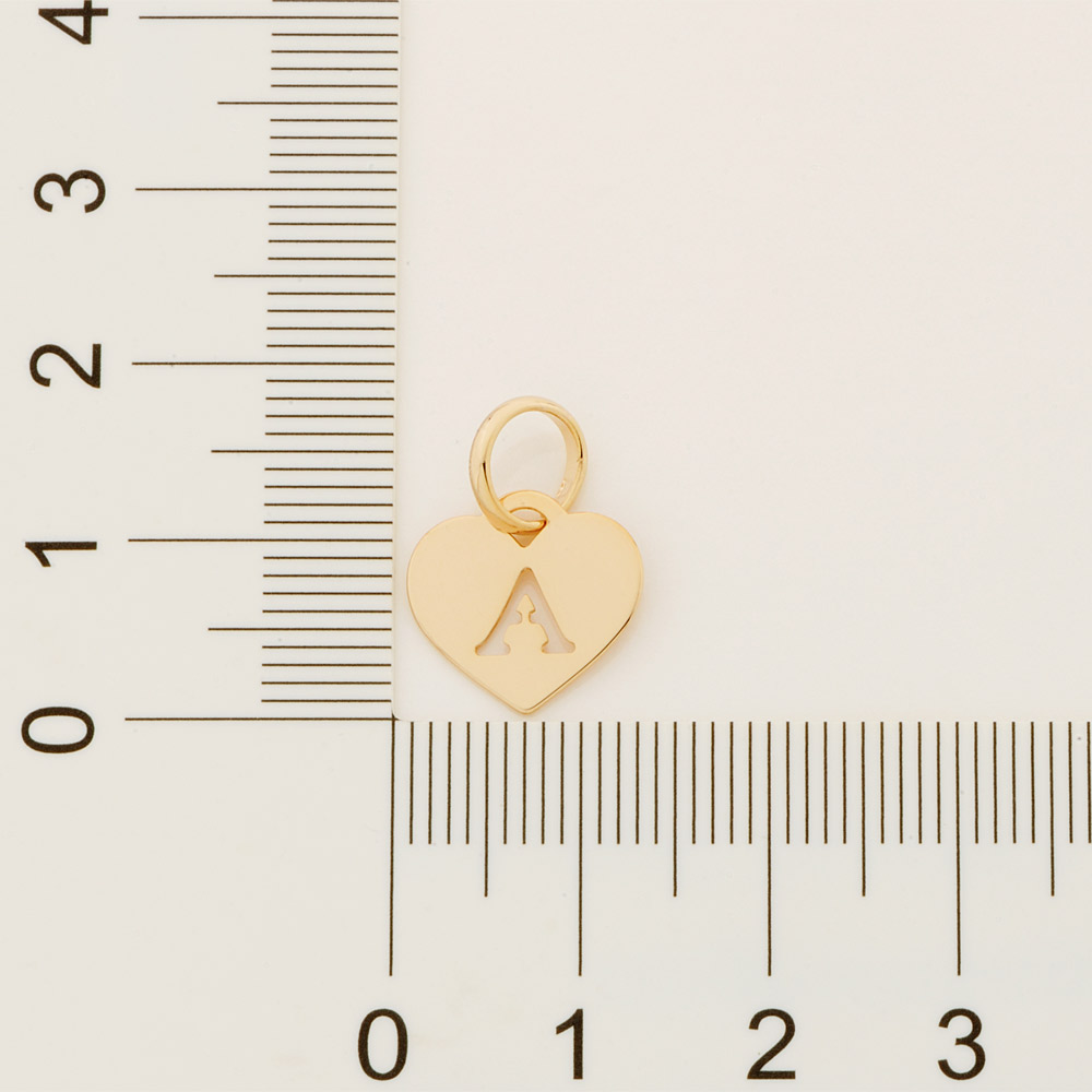 Pingente no formato de coração com letra vazada ao centro.med 1,8 cm x 1,2 cm
