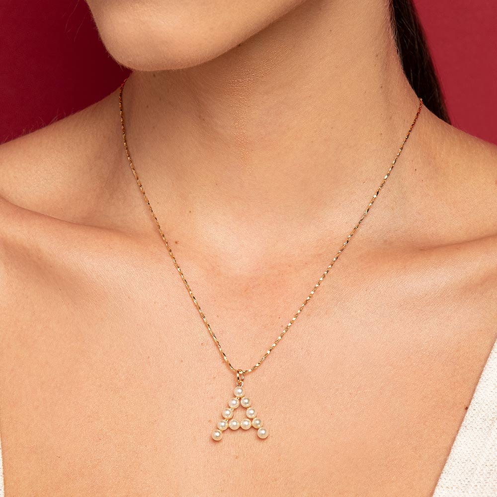 Pingente rommanel no formato de letra composto por 7 pérolas de 4,0 mm