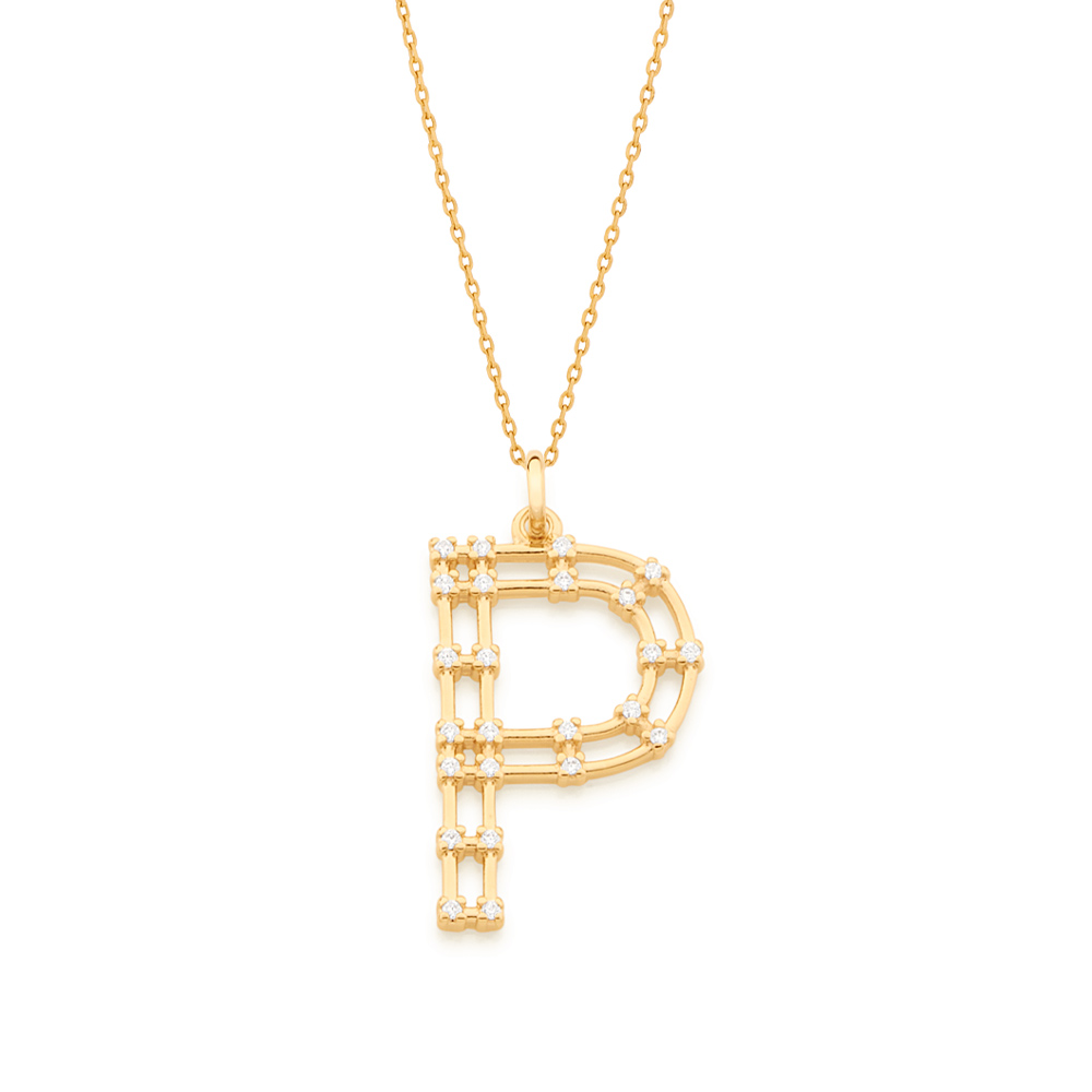 Pingente rommanel banhado a ouro letra grande vazada com zircônias 542311