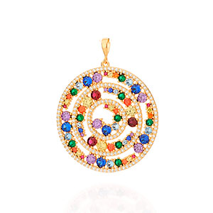 Pingente rommanel banhado a ouro mandala colorida 542268