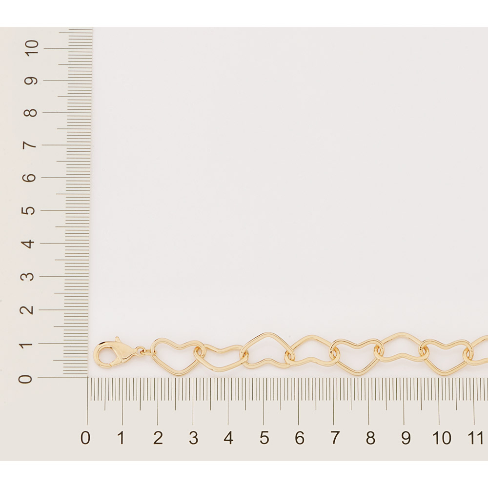 Pulseira formada por corrente no formato de corações, com fecho lagosta de 1,5 cm.