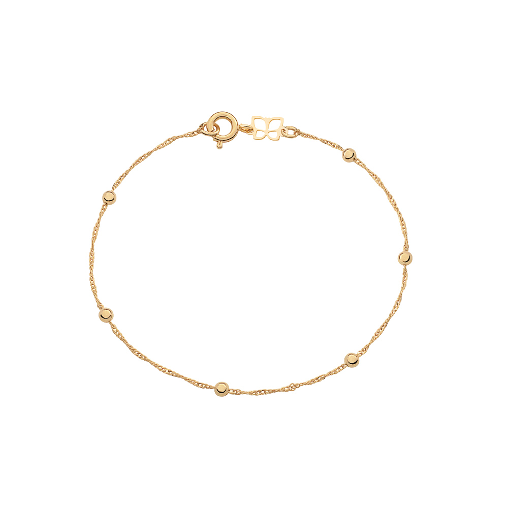 Pulseira formada por fio cingapura com bolas de metal de 3mm. med 18 cm