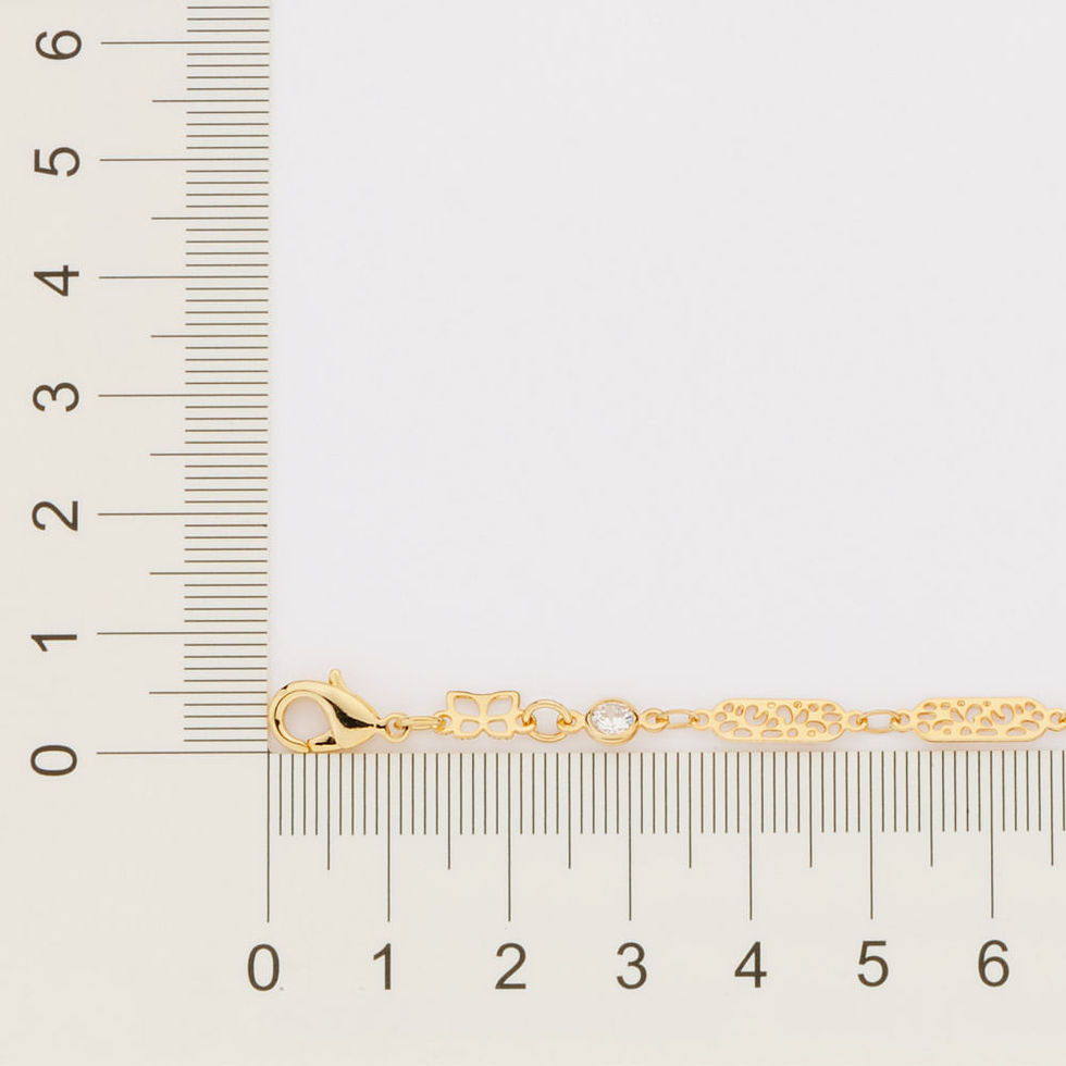 Pulseira formada por elo longo batido formato oval trabalhado intercalada por 4 zircônias de 4,0 mm.
