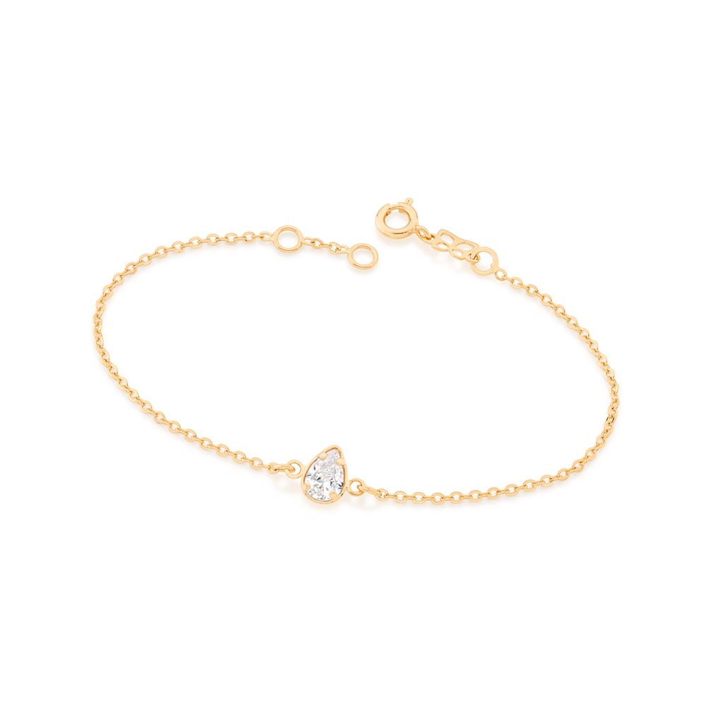 Pulseira formada por fio fino com elos intercalados, composta por 1 zircônia no formato gota de 5x7 mm.