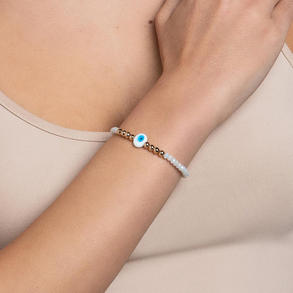 Pulseira rommanel olho grego folheada a ouro com cristais