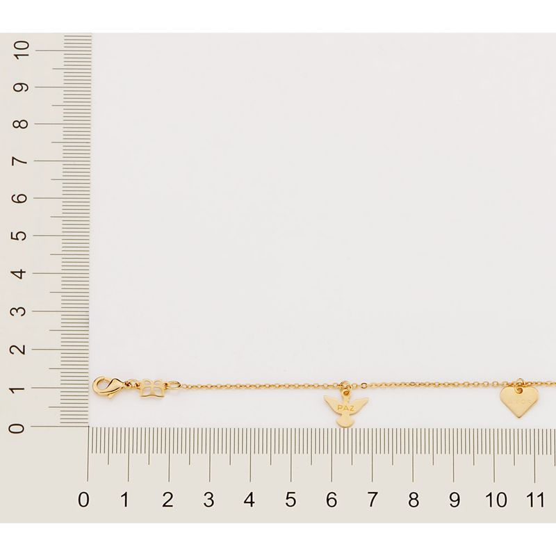Pulseira rommanel paz, amor e fé folheada a ouro